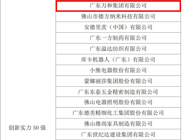 2023年11月29日,佛山市科技局正式公布“2023年度佛山市科技领军企业100强”。厨卫头部品牌万和电气名列该榜创新实力50强。